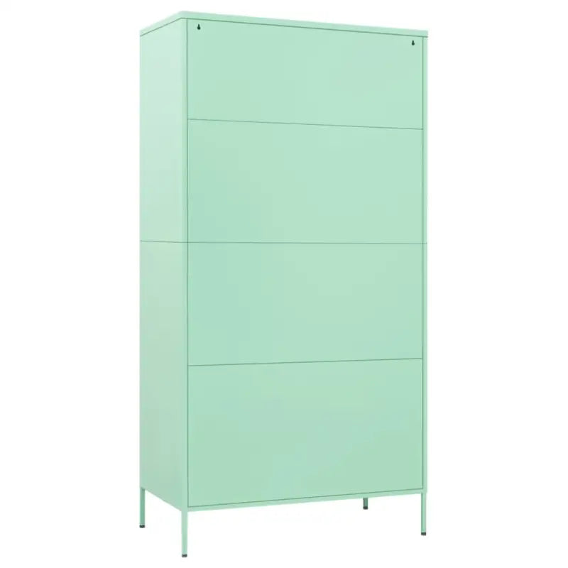 Deze kast is gemaakt van staal, waardoor hij zowel duurzaam als makkelijk schoon te maken is. Hij is voorzien van 4 verstelbare schappen en 1 groot vak met hangstang, die je voldoende opbergruimte bieden voor zowel je langere outfits als opgevouwen kleding en accessoires, zoals truien, jeans, hoeden en handtassen.