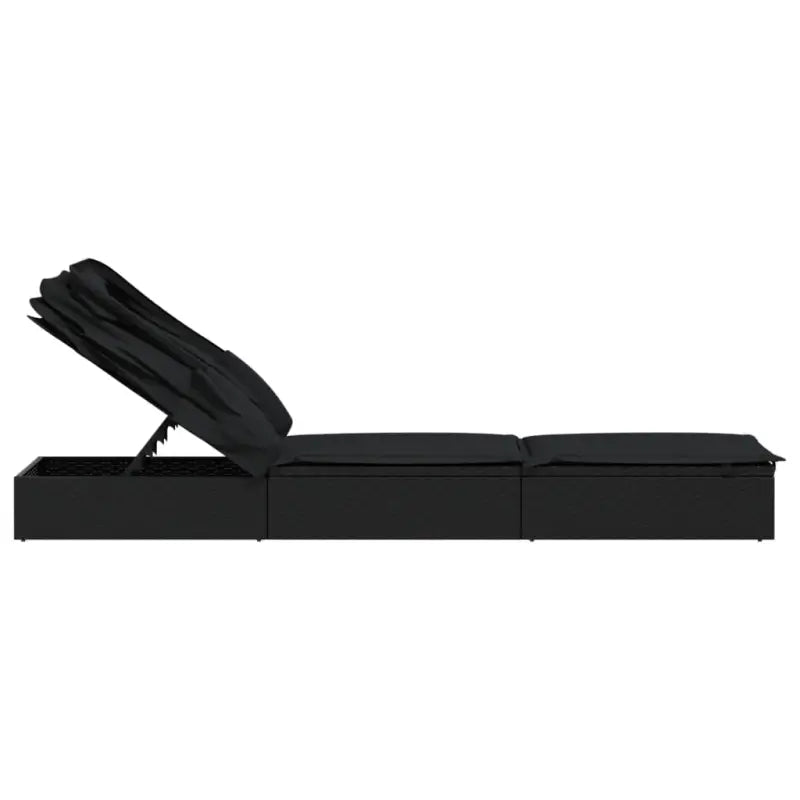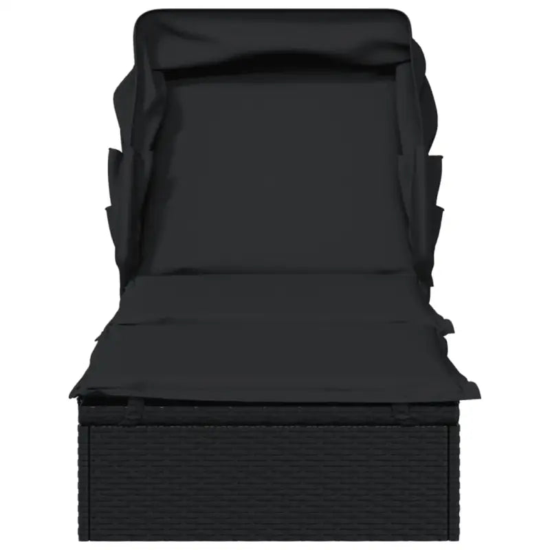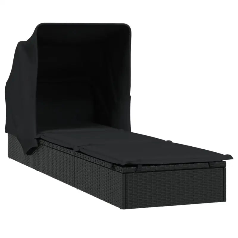 Ligstoel met inklapbaar dak en beide zijden in zwart materiaal