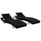 vidaXL Ligbedden 2 st met tafel poly rattan en textileen zwart