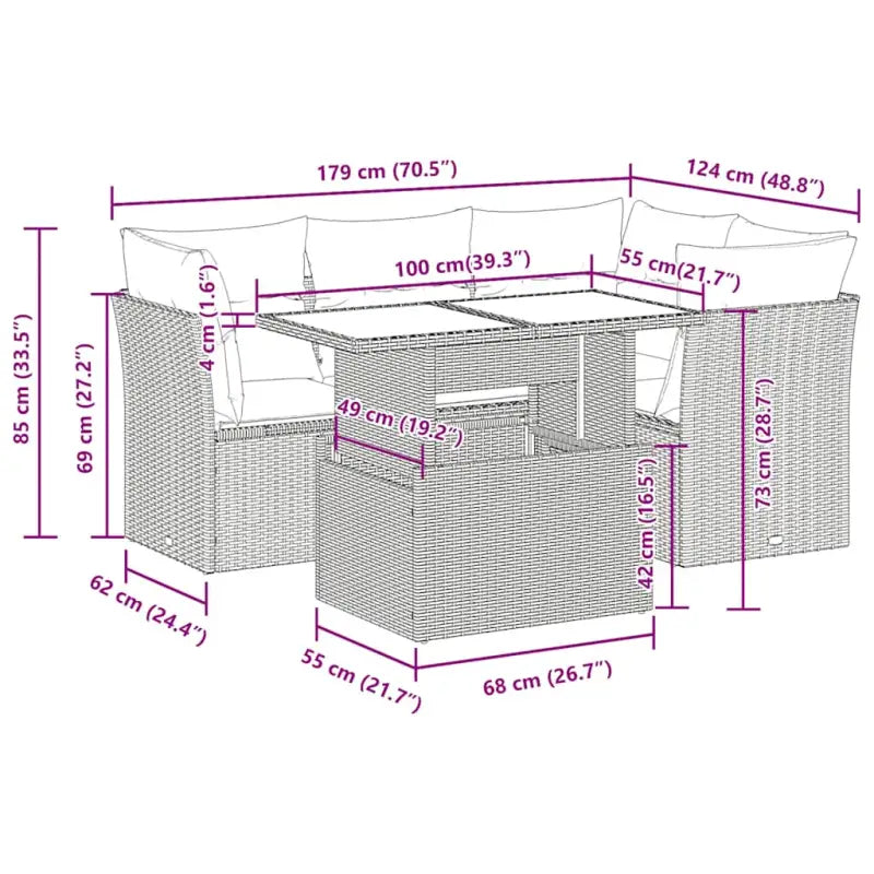 - Modulair ontwerp: deze tuinmeubelset heeft een modulair ontwerp, waardoor hij volledig flexibel en gemakkelijk te verplaatsen is. Op die manier kun je een opstelling van tuinmeubilair creëren.