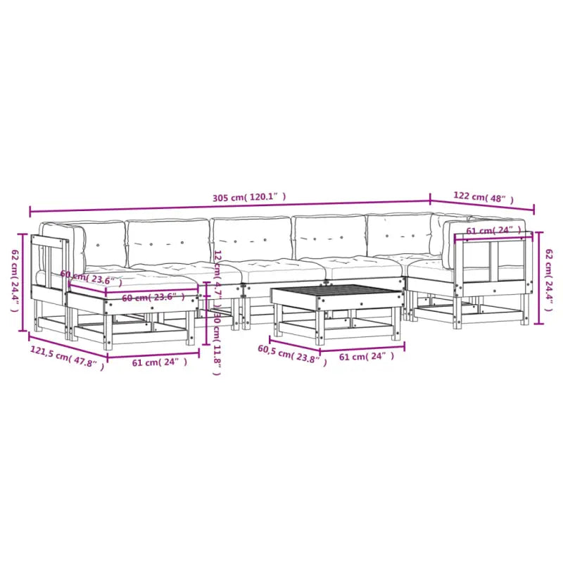 Massief Douglashout Loungeset met voetenbank en salontafel voor tuin