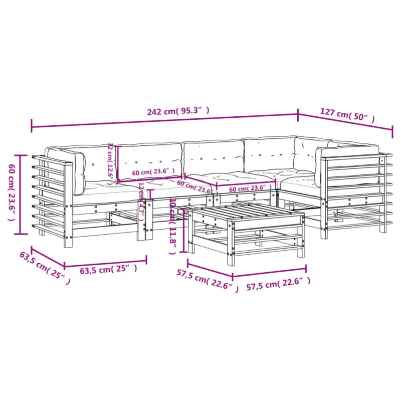 • Afmetingen middenbank: 57,5 x 63,5 x 60 cm (L x B x H)