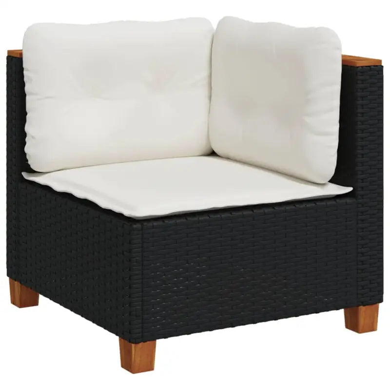 - Materiaal: PE-rattan, gepoedercoat staal en massief acaciahout met een natuurlijke olieafwerking