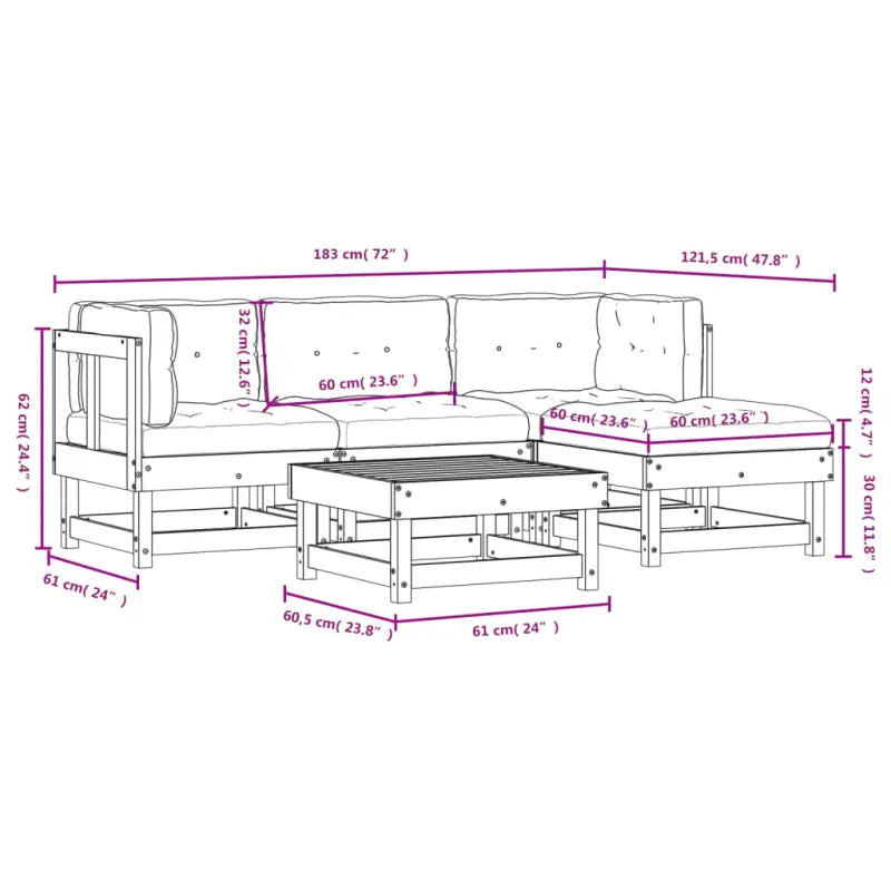 Houten loungeset van massief grenenhout met voetenbank en salontafel