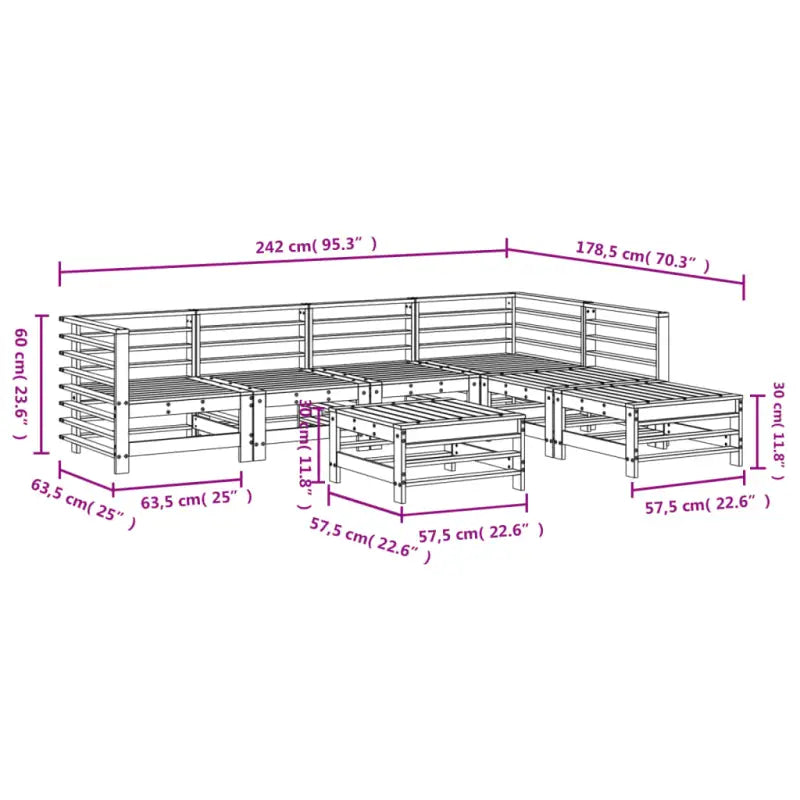 Houten loungeset met massief grenenhout en voetenbank salontafel