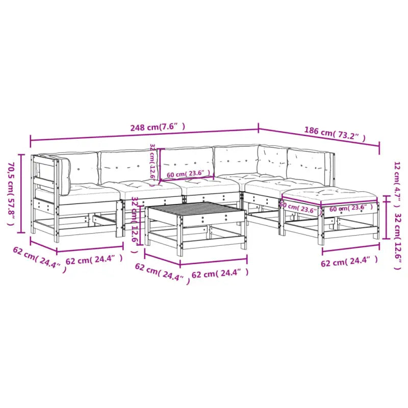 Massief Douglashout loungeset met voetenbank en salontafel voor de tuin