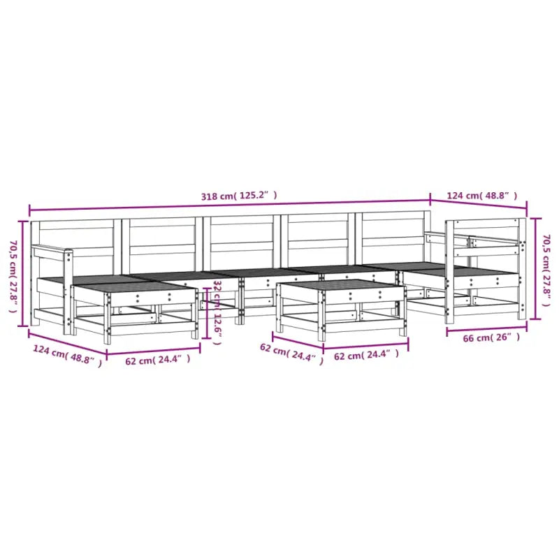 Houten loungeset van massief grenenhout met voetenbank en salontafel
