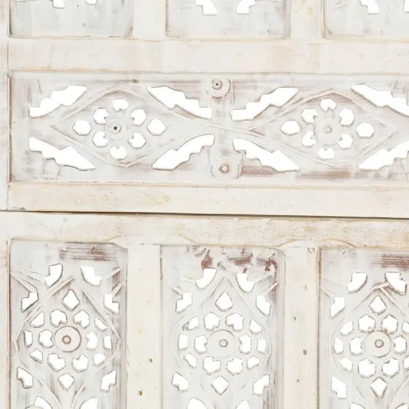 Voeg een vleugje klassieke charme toe aan je interieur met ons elegante, handgesneden kamerscherm! Het is perfect om in de slaapkamer te plaatsen, om zo een aparte omkleedruimte te creëren, maar het scherm is ook ideaal om een deel van een kamer af te scheiden.