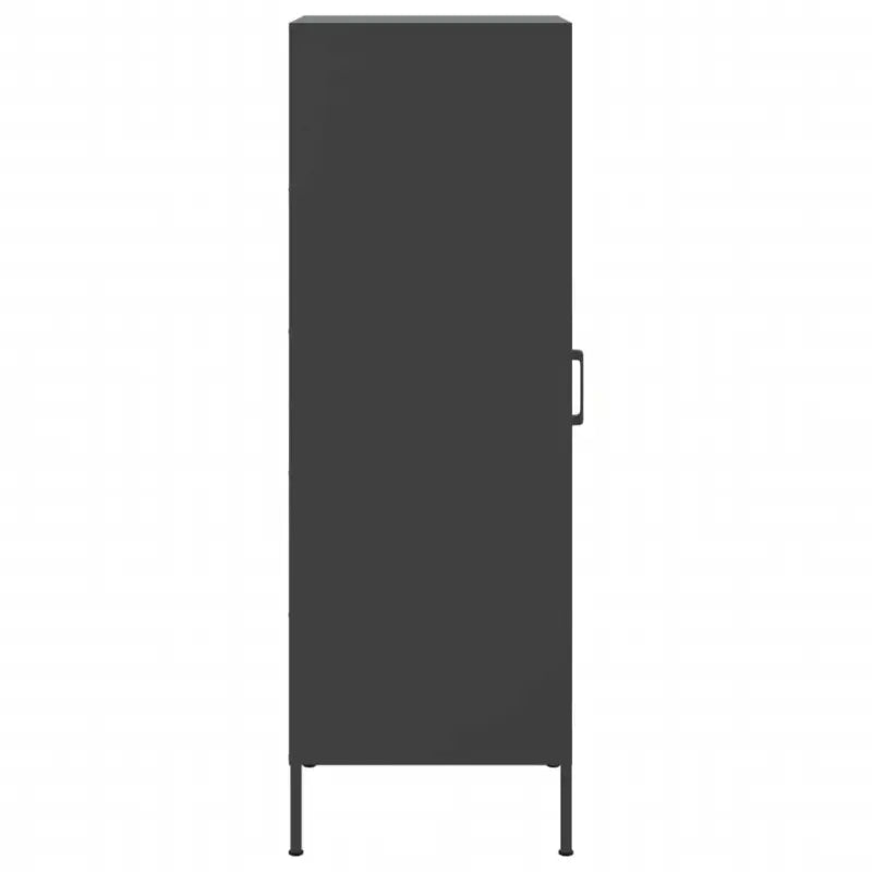 Deze stevige hoge kast met een industriële stijl is een tijdloze toevoeging aan je woon- of slaapkamer.