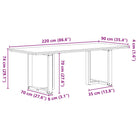 - Het tafelblad heeft een dikte van 4 cm langs de randen voor een robuuste uitstraling en een dikte van 2 cm in het midden om het houtverbruik en het totale gewicht te verminderen.