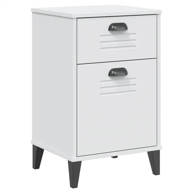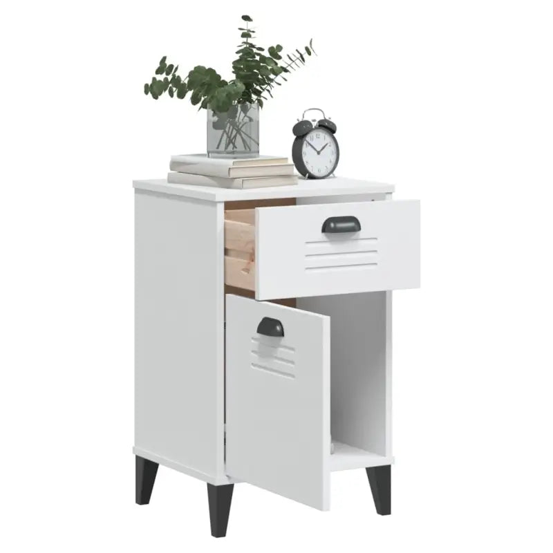 Dankzij een trendy ontwerp past dit nachtkastje gemakkelijk in je slaap- of woonkamer en voegt hij een industriële charme toe aan je interieur.
