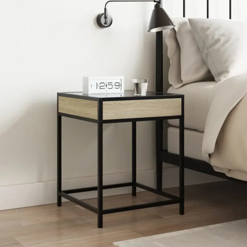 Nachtkastje met infinity LED en bewerkt hout voor een tijdloos interieur