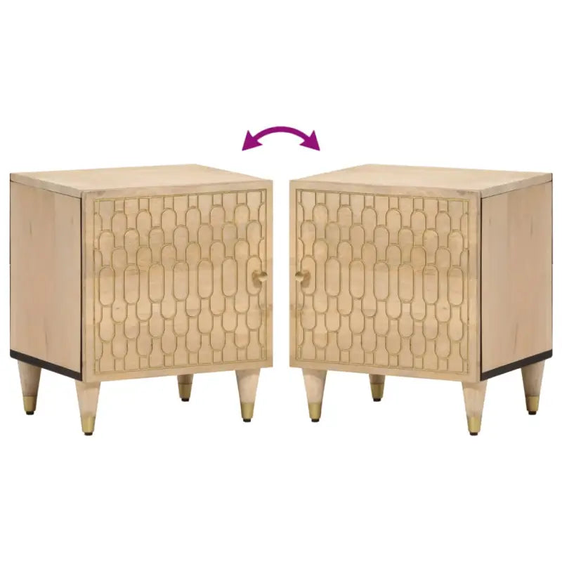 Nachtkastje met massief mangohout en houten poten in retro stijl