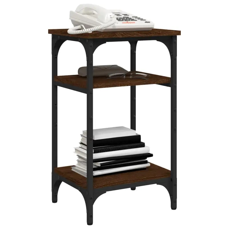 Bijzettafel met bewerkt hout en aanpasbare poten voor industriële stijl