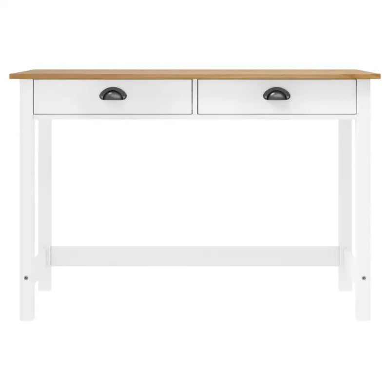 De houten tafel combineert vakmanschap met functionaliteit. Onze consoletafel heeft een compact ontwerp en neemt weinig ruimte in. De 2 soepele lades bieden extra ruimte om persoonlijke spulletjes op te bergen. Deze wandtafel is gemaakt van massief grenenhout en is zeer duurzaam.