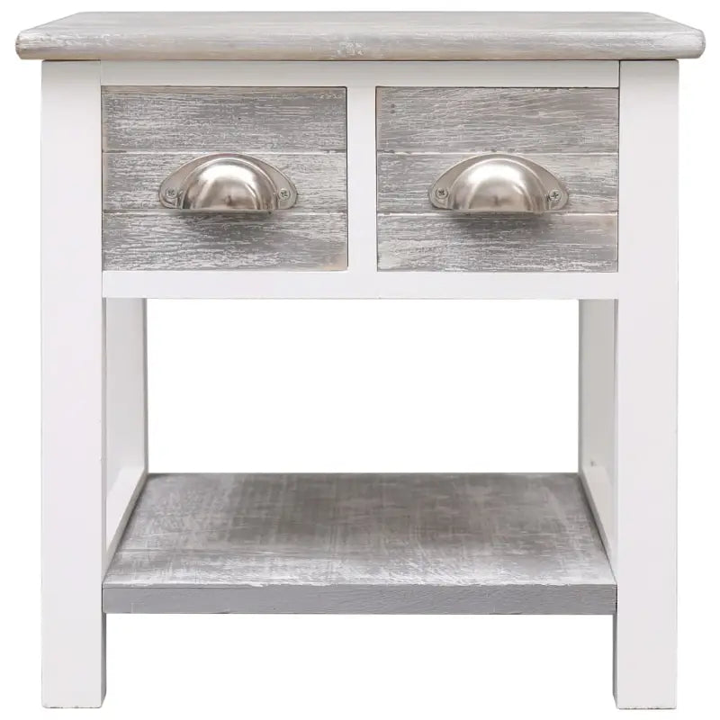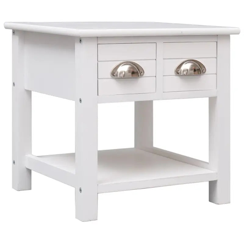 Deze salontafel is gemaakt van paulowniahout en is duurzaam en stevig. De tafel biedt veel opbergruimte dankzij de 2 lades en het onderste schap. Het stevige tafelblad is ideaal voor het uitstallen van decoratieve objecten, fotolijsten en potplanten. Hij is gemakkelijk schoon te maken met een vochtige doek. De bijzettafel is eenvoudig te monteren.