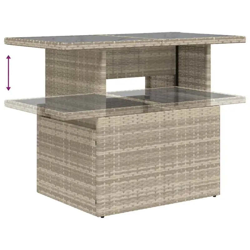 - Materiaal: PE-rattan, gepoedercoat staal en gehard glas