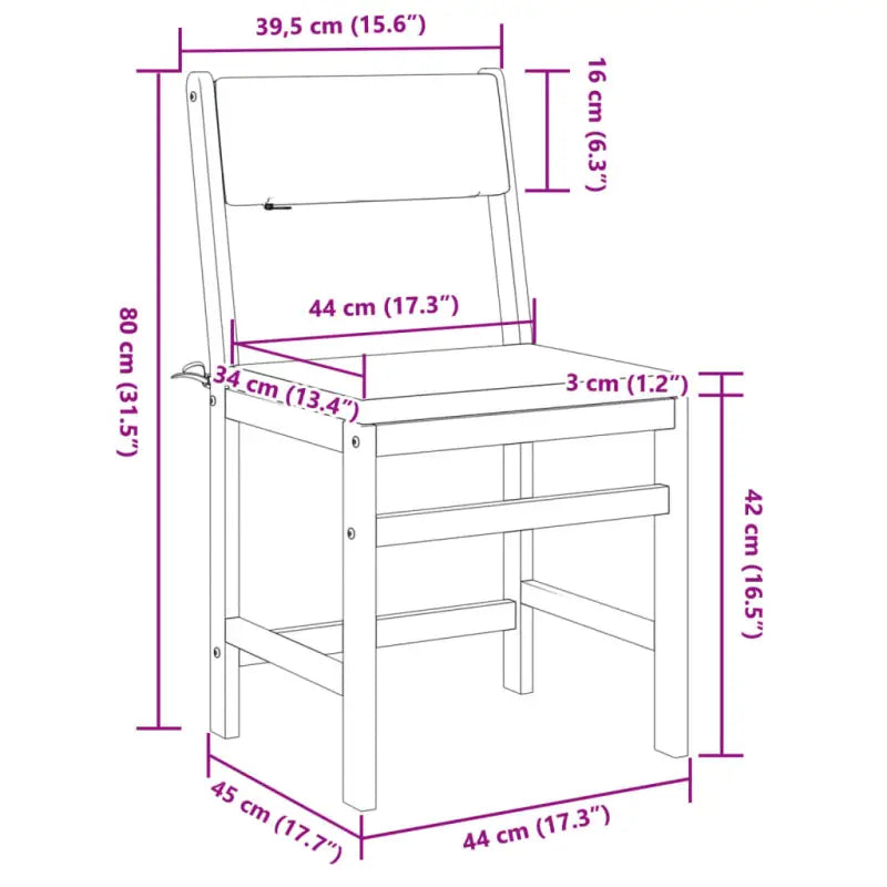 - Gelat ontwerp: het latontwerp van de bistroset voorkomt waterophoping, waardoor de zitting droog blijft en onnodig rotten wordt voorkomen.