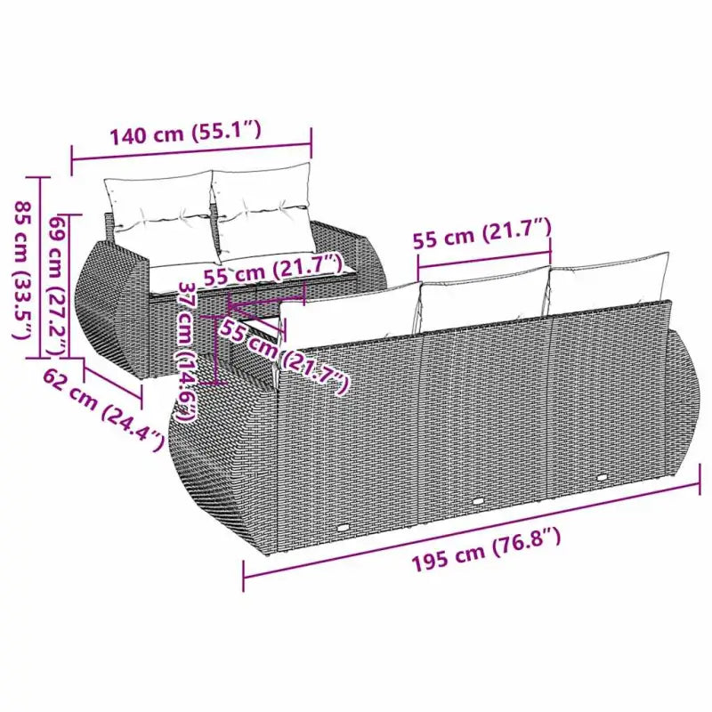 • Totale afmetingen 2-zitsbank: 140 x 62 x 69 cm (B x D x H)