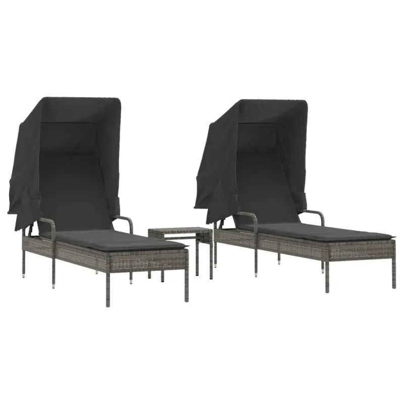 Ligstoelen met poly rattan en uitschuifbare luifel voor buiten genieten