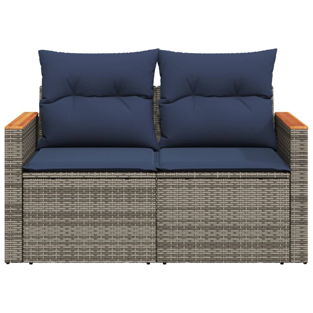vidaXL Tuinbank 2-zits met kussens & tafel poly rattan grijs