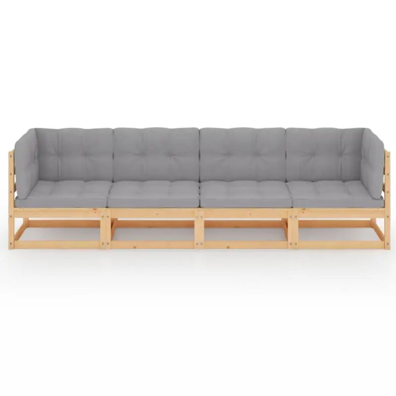 Loungebank voor 4 personen met massief grenenhout en rug zijkussens