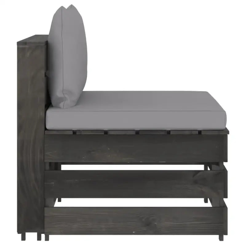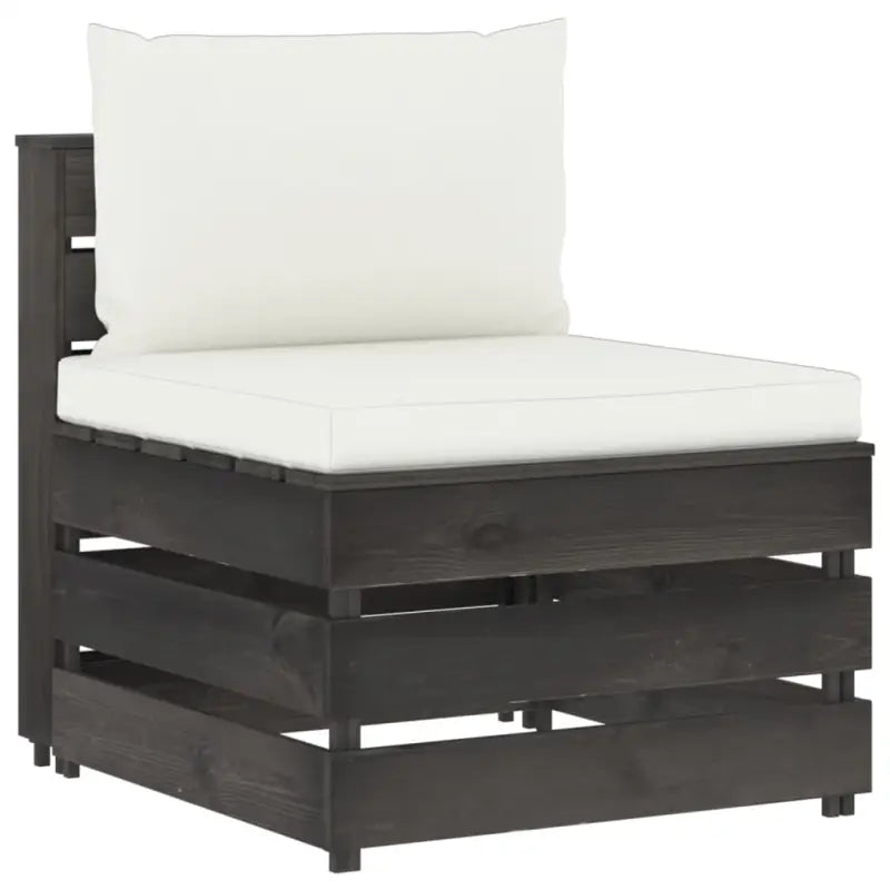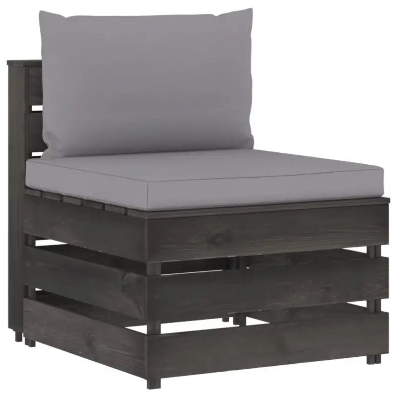 De middenbank is gemaakt van geïmpregneerd grenenhout, waardoor hij duurzaam en weerbestendig is. Deze tuinstoel heeft een stevige constructie en vergt weinig onderhoud. Hij is ontworpen als onderdeel van een loungeset maar kan ook als losse stoel gebruikt worden. Je kunt hem combineren met andere modulaire segmenten, zoals een tafeltje, voetensteun en hoekbank, om zo je eigen persoonlijke loungeset samen te stellen!