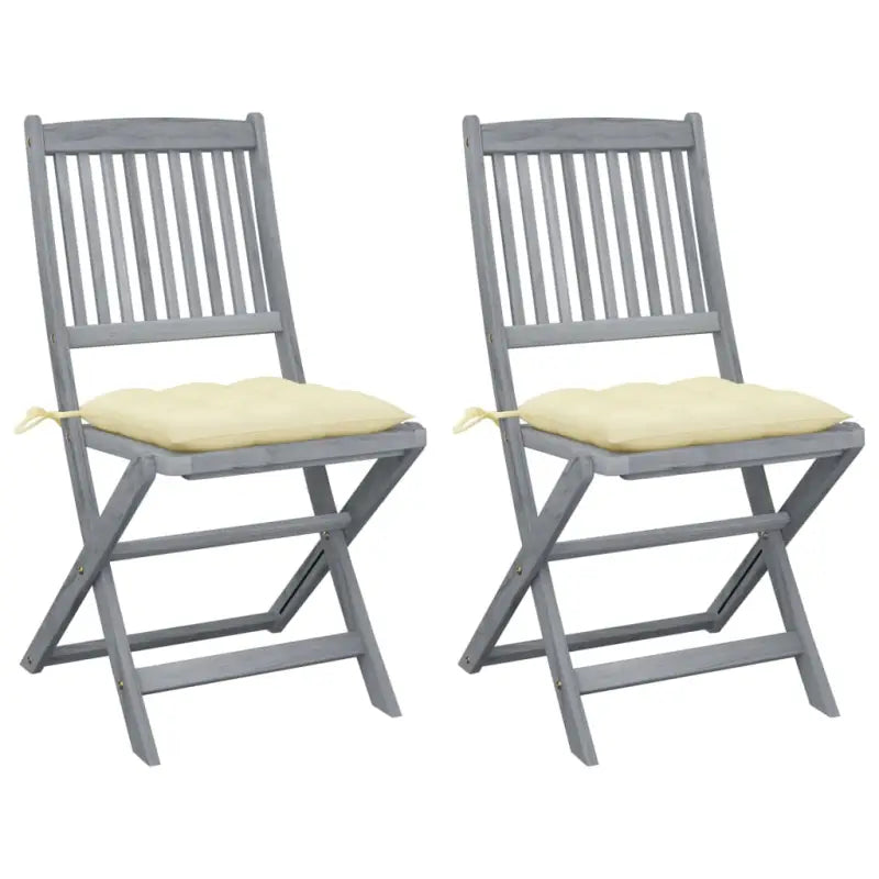Deze moderne houten stoelenset met kussens voegt een vleugje natuurlijke stijl toe aan je tuin, patio of terras. Deze klapstoelen zijn een goede keuze als je buiten wilt eten.
