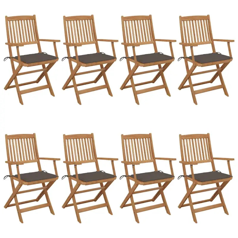 Deze massief acaciahouten inklapbare stoelen met kussens zijn perfect om op te ontspannen en in je tuin of op je terras van de zon te genieten.