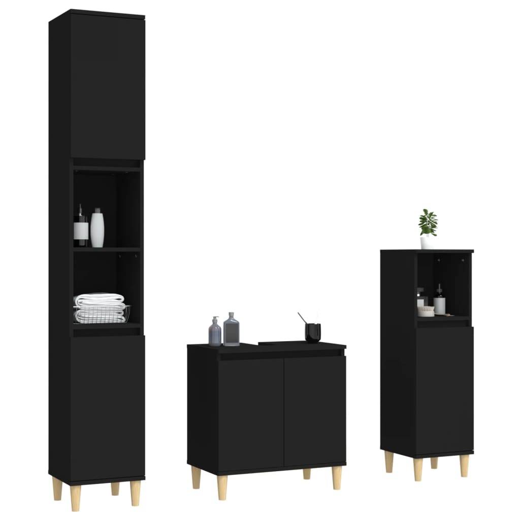 vidaXL 3-delige Badkamermeubelset bewerkt hout zwart