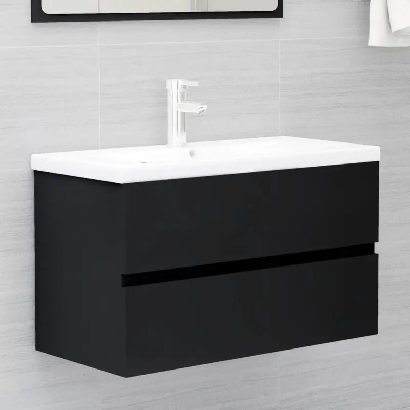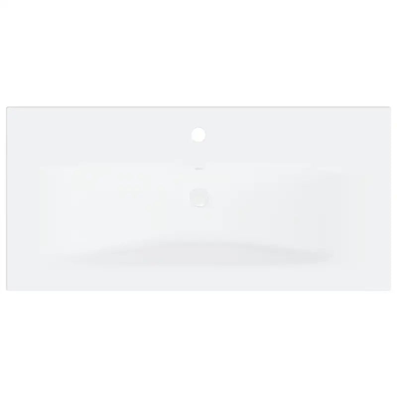 Deze trendy badkamermeubelset, bestaande uit een wastafelkast, een inbouwwastafel en een spiegel, past perfect bij je badkamer of wasruimte. Hij heeft een opvallende, opgeruimde uitstraling.