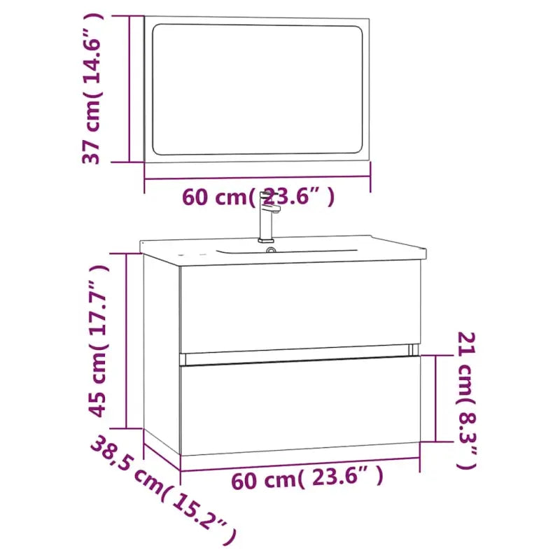 - Afmetingen wastafelkast: 60 x 38,5 x 45 cm (B x D x H)