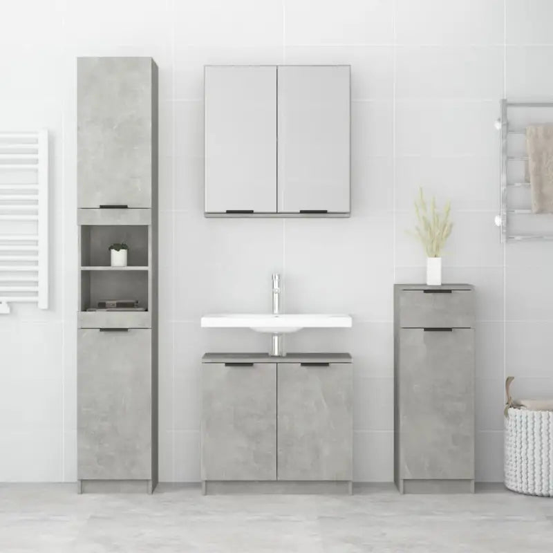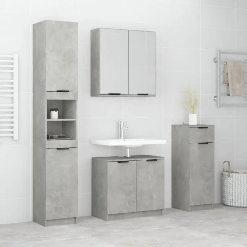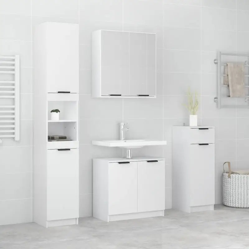 Deze aantrekkelijke badkamerkastenset biedt veel opbergruimte en heeft een trendy en toch praktisch ontwerp.