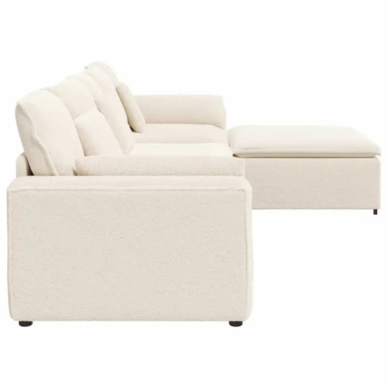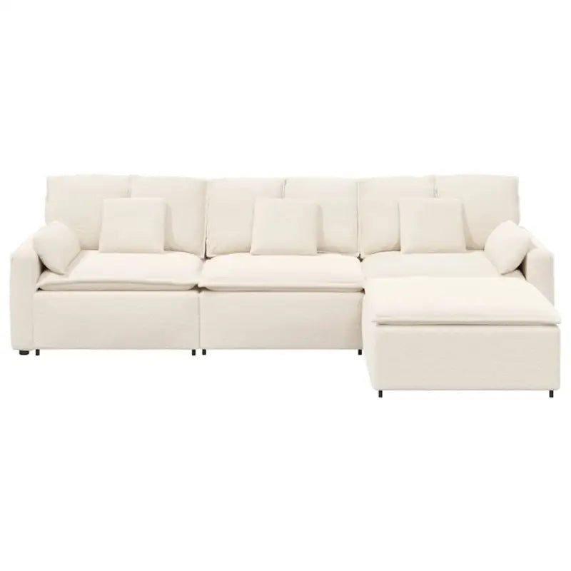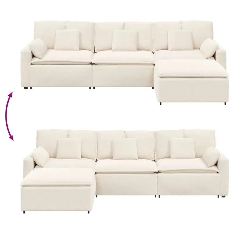 • Royale zitplaatsen: met vier modulaire secties biedt de bank voldoende zitruimte om comfortabel te loungen, waardoor hij ideaal is voor familiebijeenkomsten of het ontvangen van vrienden. Of het nu wordt gebruikt in een gezellige woonkamer of een open ruimte, het ruime ontwerp zorgt ervoor dat iedereen samen kan ontspannen.