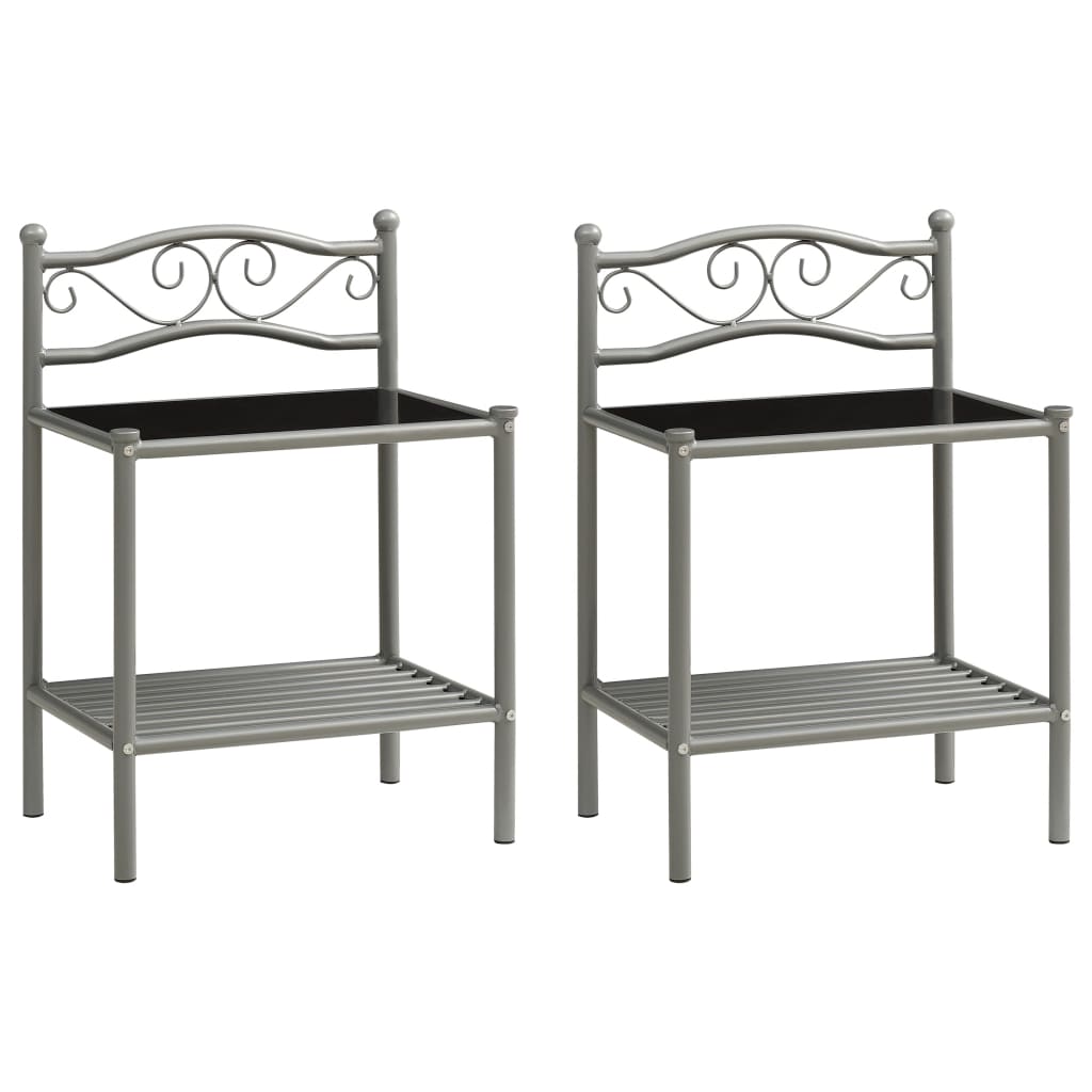 vidaXL Nachtkastjes 2 st metaal en glas roze en transparant