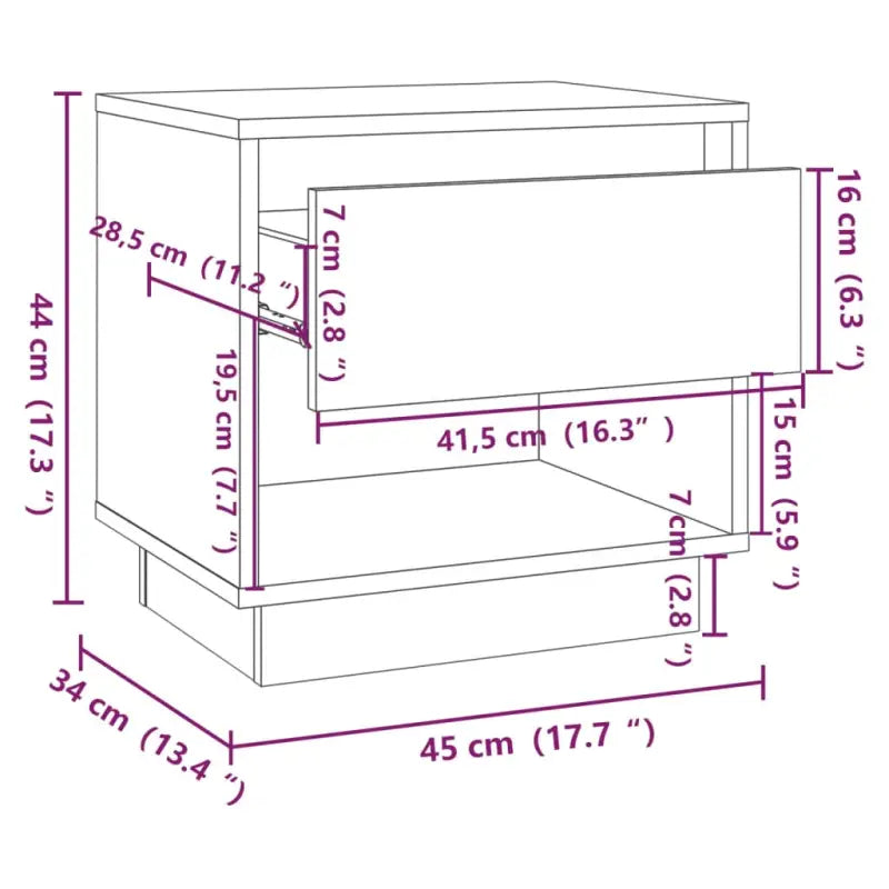 Dit nachtkastje heeft een stevige en duurzame constructie, waardoor hij langdurige dienstbaarheid biedt. De lade en het open vak bieden voldoende ruimte om je kleine spullen overzichtelijk en binnen handbereik te houden. Het stevige blad is ideaal om een lamp, klok, enz. op te plaatsen.