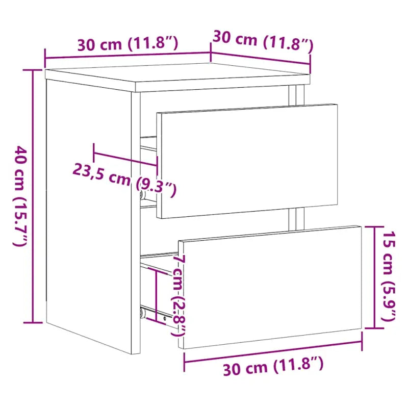 Dit nachtkastje is gemaakt van hoogwaardig bewerkt hout waardoor het stevig, duurzaam en multifunctioneel is. Als universeel inzetbaar meubel kan je dit kastje ook gebruiken als salontafel in de woonkamer. De 2 lades bieden voldoende opbergruimte om je tijdschriften, boeken, afstandsbedieningen en andere spulletjes geordend en binnen handbereik te houden. Bovendien is dit nachtkastje eenvoudig schoon te maken met een vochtige doek.