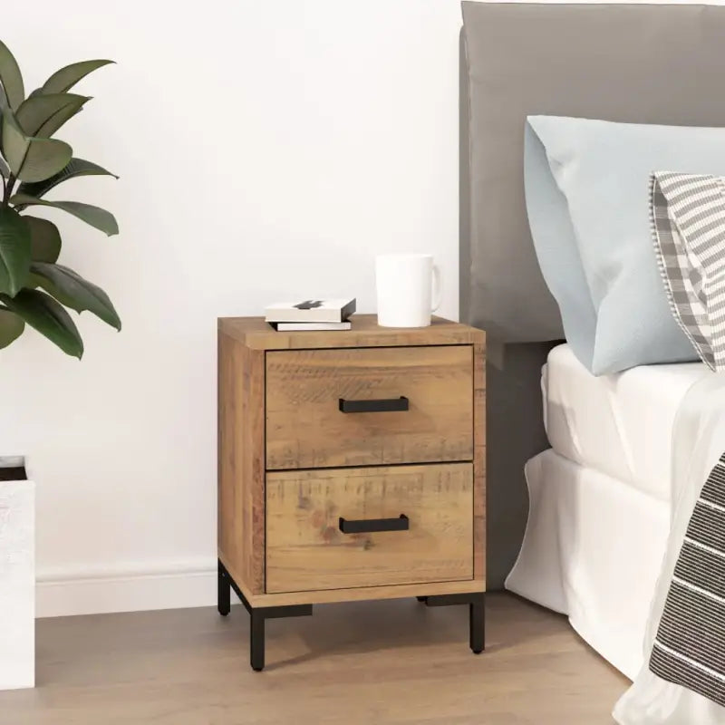 Nachtkastje van massief grenenhout met metalen poten in vintage stijl