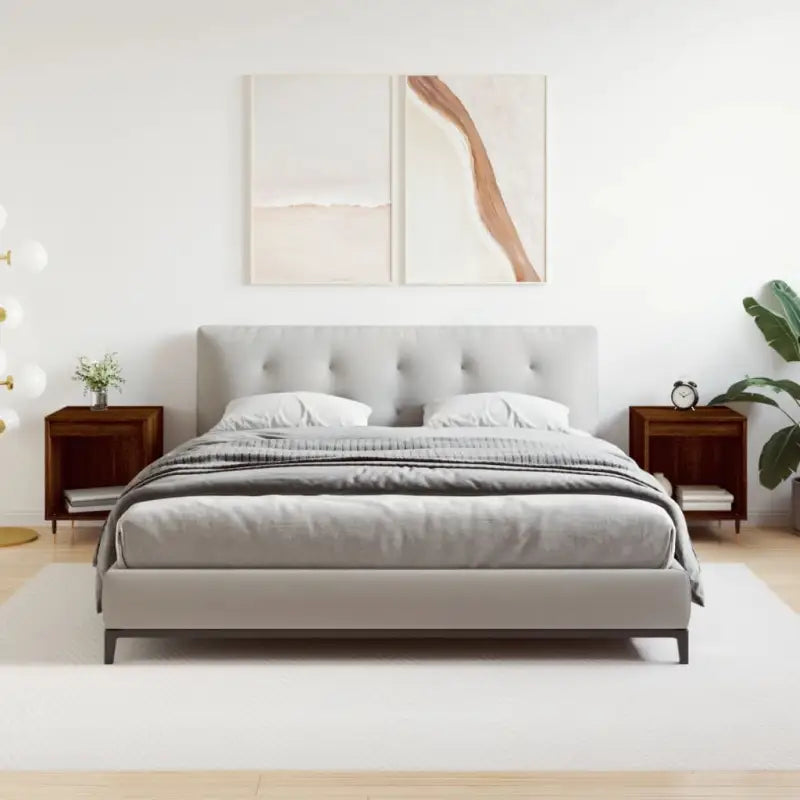 Nachtkastjes met bewerkt hout en metalen poten in een strak design