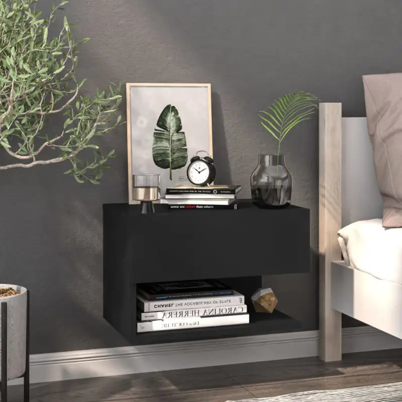 • Wandmontage ontwerp: het nachtkastje kan aan de muur gemonteerd worden voor extra opbergruimte. Op die manier is er meer ruimte op de vloer en blijft het gebied schoon.
