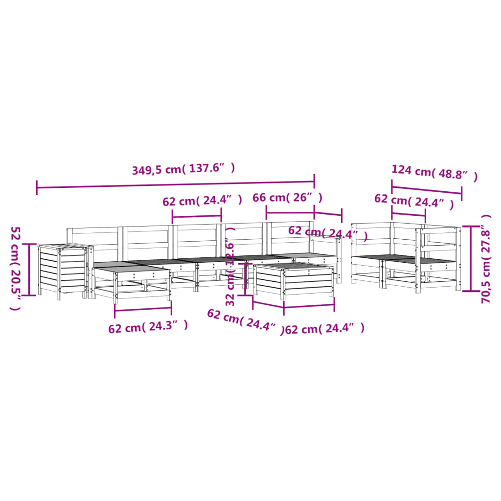 vidaXL 8-delige Loungeset massief grenenhout wit