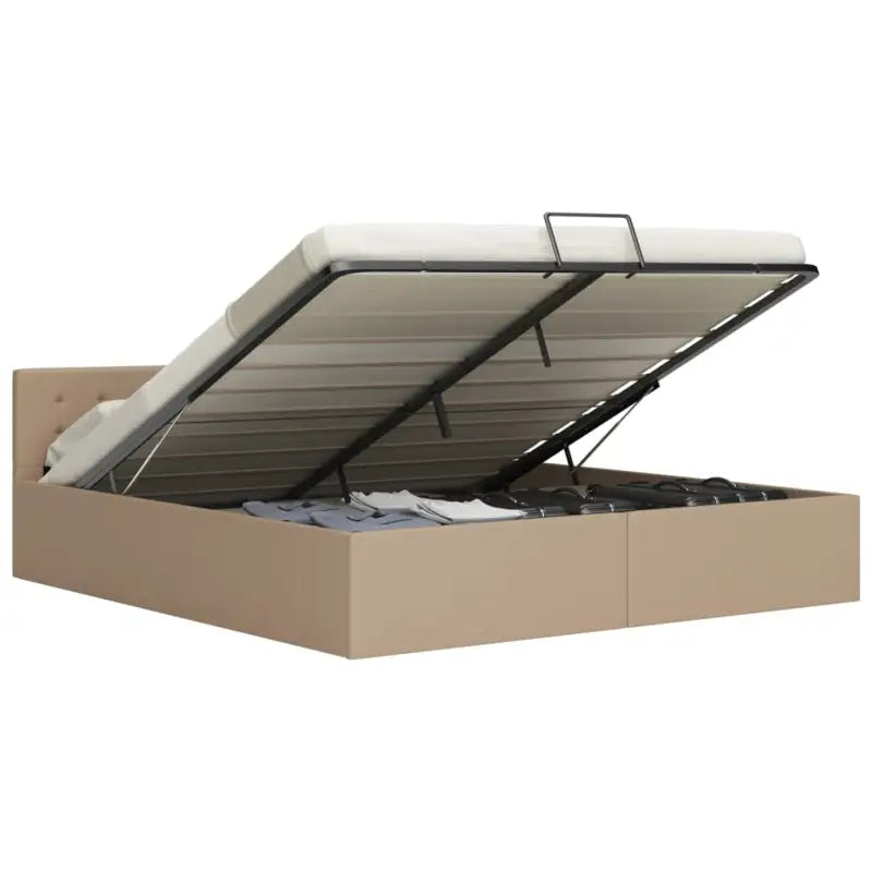 Dit beklede bed verandert de ongebruikte ruimte onder je matras in opbergruimte. Zo heb je voldoende ruimte voor het opbergen van kleding, dekens, beddengoed, enz. Het hydraulische frame blijft omhoog staan als hij omhoog is getild, zo heb je beide handen vrij om spullen op te bergen of te pakken.