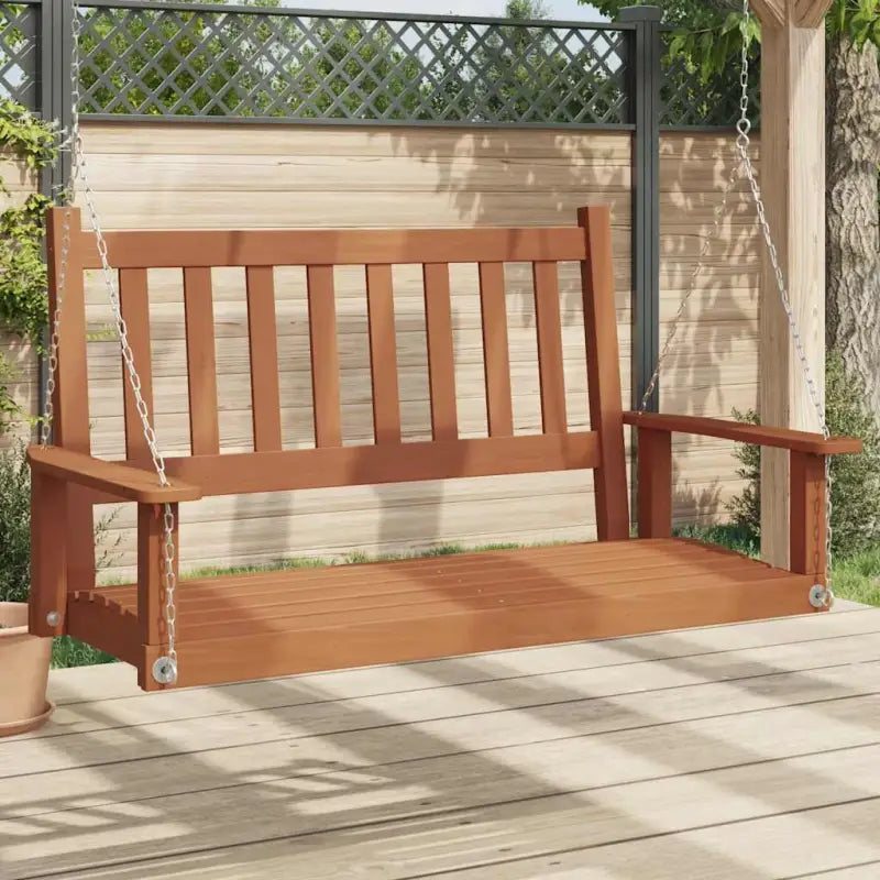 Schommelbank van massief vurenhout met metalen kettingen en goede ventilatie