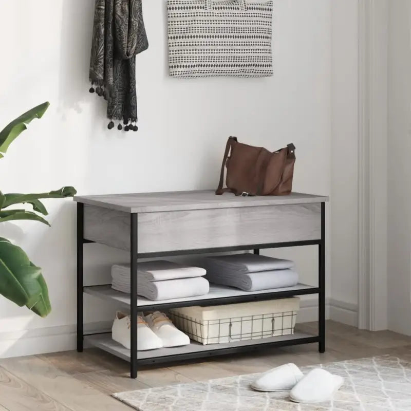 Opberg- en halbankje met verstelbare poten in Grijs Sonoma Eiken stijl