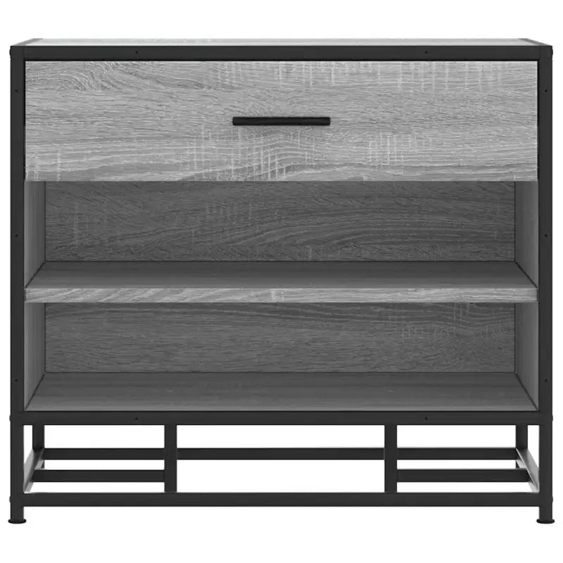 Opberg- en halbankje van bewerkt hout in grijs Sonoma