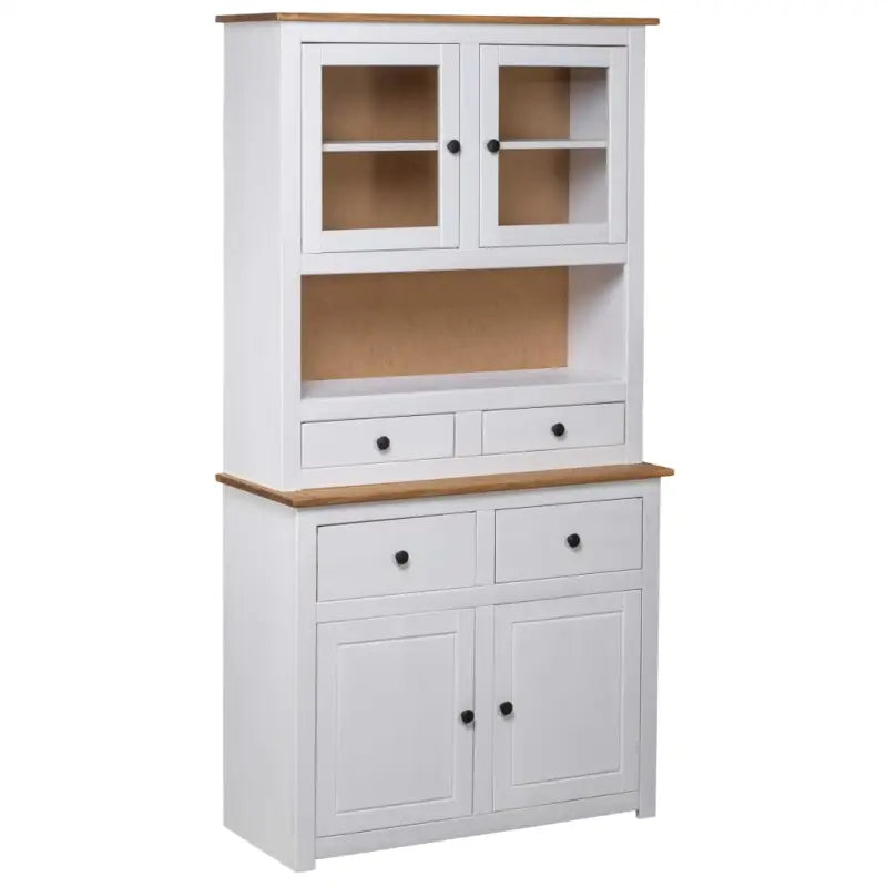 Deze massief grenenhouten hoge kast heeft een rustiek en trendy ontwerp en is zowel een decoratieve als een praktische aanvulling op je interieur.