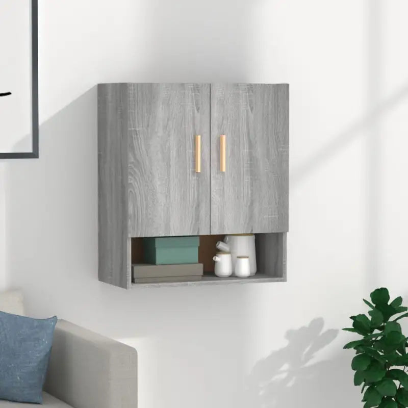 Houten wandkast in grijs sonoma met bewerkt hout voor Scandinavisch design