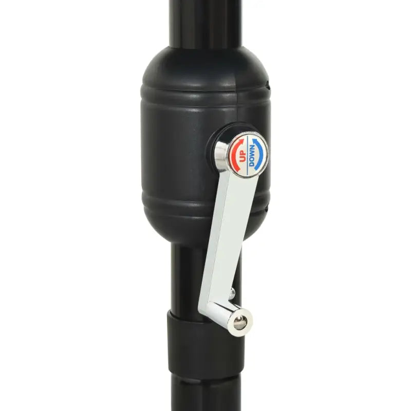 Het parasoldoek is gemaakt van uv-beschermend en anti-vervagend polyester, waardoor het je optimale bescherming tegen de zon biedt. De gepoedercoat aluminium paal en baleinen zorgen voor stabiliteit. Dankzij de handslinger en het kantelmechanisme is de parasol inklapbaar en draagbaar. Hij kan worden gemonteerd op een bestaande standaard of in het midden van de tafel als hij een parasolgat heeft.