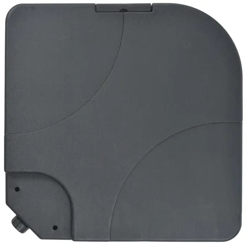 De parasolvoet bestaat uit 4 afzonderlijke delen en kan gevuld worden met 60 liter water of 80 kg zand. Hij is ideaal om de parasols met een kruisbasis te verstevigen. Wanneer de voet leeg wordt gemaakt is hij lichtgewicht en gemakkelijk te verplaatsen.