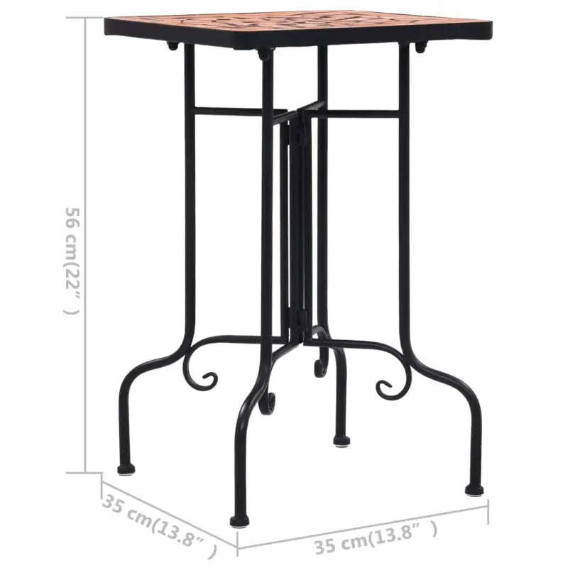 Het tuintafeltje heeft een weerbestendig mozaïeken tafelblad en elegant gebogen poten. Hij is een blikvanger in je tuin, balkon, terras, enz.